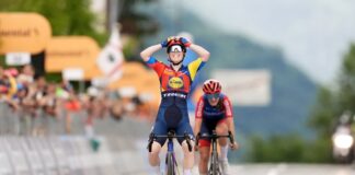 Анна Хендерсон — победительница 2-го горного этапа до Априки на Женской...